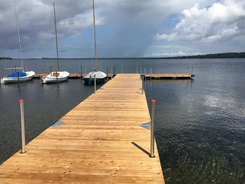 Støbt plastflydebro med platform. Foto: CN Fritid.