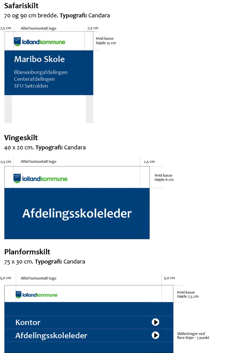 Ved at følge Lolland Kommunes designmanual kan du sikre dig, at du bruger de rigtige fonte og farver, at logoet er placeret korrekt og øvrige retningslinjer, der skal til for, at din modtager ikke er i tvivl om, at det er Lolland Kommune, der er afsender. Retningslinjerne i manualen skal bruges på alt fra plakater og rapporter til biler, tøj og kuglepenne. Manualen skal ikke ses som en spændetrøje, men som nogle simple regler og principper, der giver plads til kreativ udfoldelse.
