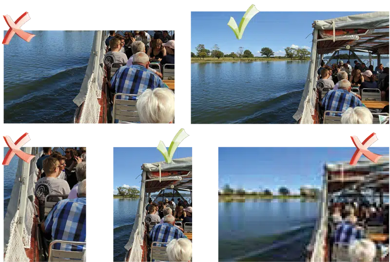 - Beskær hensigtsmæssigt. Se eksempler på gode og dårlige beskæringer herunder.