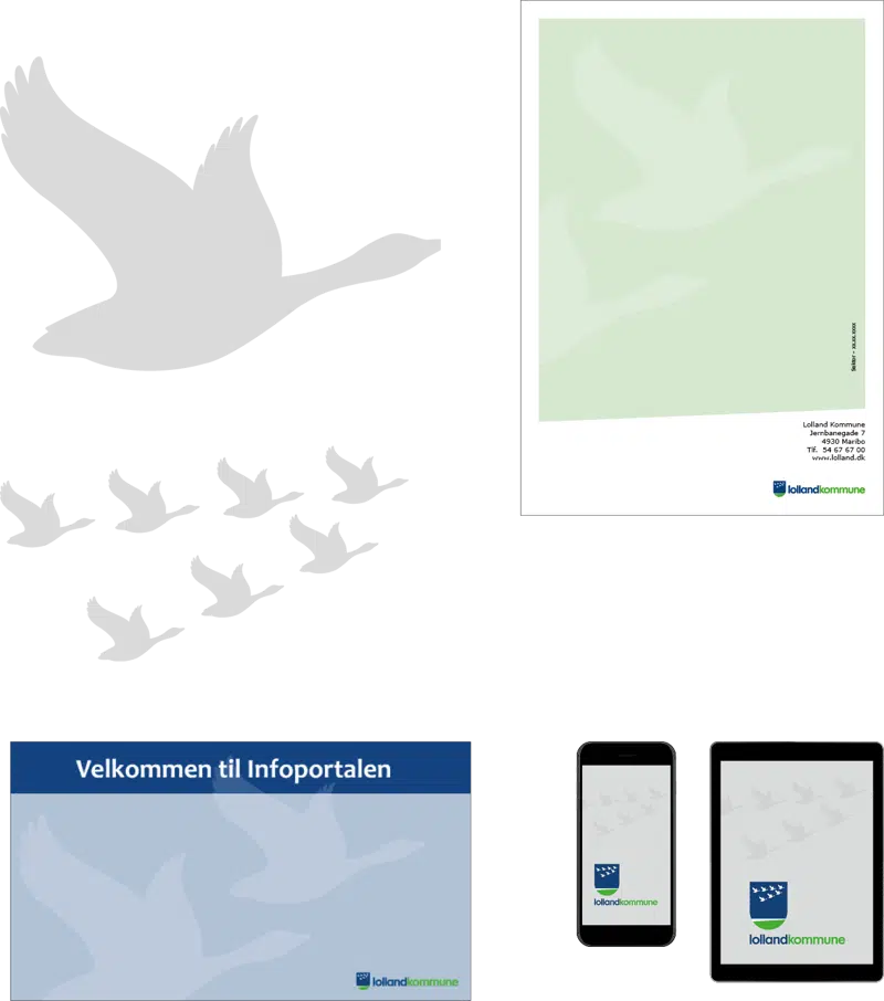 Grågæssene i kommunens logo kan anvendes som ”grafisk krydderi” på forskellige måder.