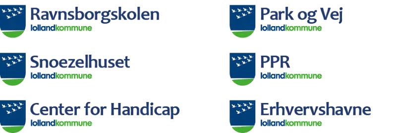 Teams og decentrale enheder (institutioner), som har behov for skiltning med navn, egen hjemmeside eller brevskabelon, kan anvende et særligt designet logo, som er en kombination af navnet og Lolland Kommunes officielle logo. Institutionslogoerne skal være korte (læsevenlige) og sikre en visuel genkendelighed. institutionslogoerne er med blå tekst og Lolland Kommunes typografi; Candara Bold. Det er ikke tilladt selv at sætte tekst over, under eller ved siden af det ordinære logo.