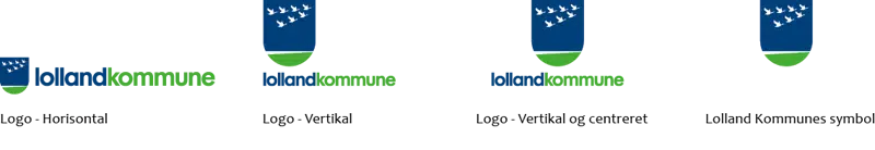 Lolland Kommunes logo skal som udgangspunkt optræde i den horisontale version. Den vertikale version kan bruges i tilfælde, hvor den horisontale version ikke passer til formatet. Den vertikale centrede version bruges kun i helt særlige tilfælde, hvor det giver mening, at symbolet med grågæs er centreret. Symbolet med grågæs kan ligeledes i særlige tilfælde optræde alene.