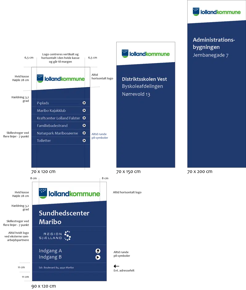 Den skrå bjælke/hældningen er bl.a. det, der gør Lolland Kommunes visuelle identitet unik.